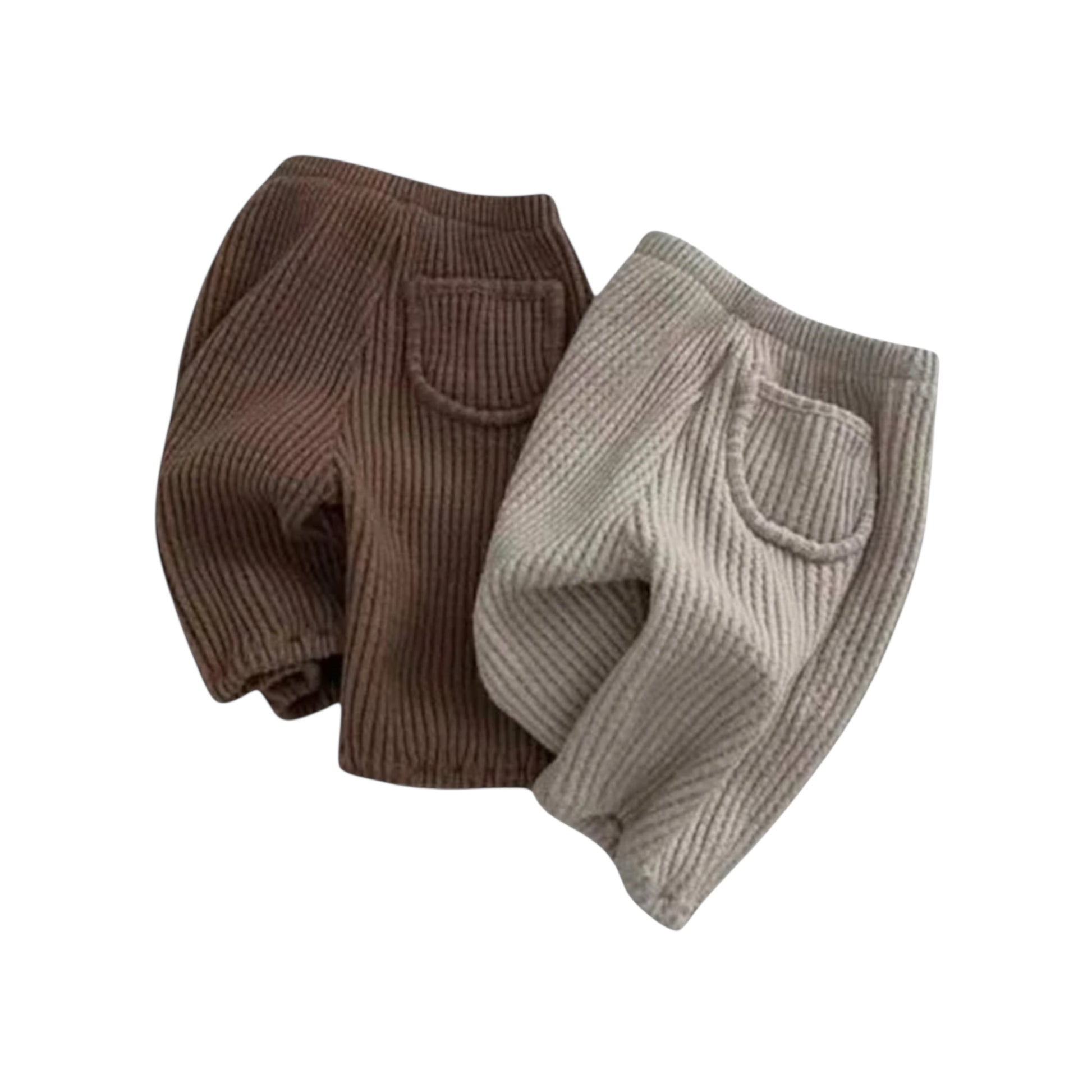 These unisex waffle-style trousers offer a perfect mix of comfort and casual style. Featuring an elastic waistband for a flexible, snug fit, and loose elastic cuffs at the ankles, they provide a relaxed silhouette that’s both easygoing and practical. Available in two versatile colors—rich brown and soft beige—these trousers are perfect for everyday wear, offering a laid-back yet stylish look for all genders. Whether dressed up or down, these trousers are an essential wardrobe staple for effortless comfort and timeless style.