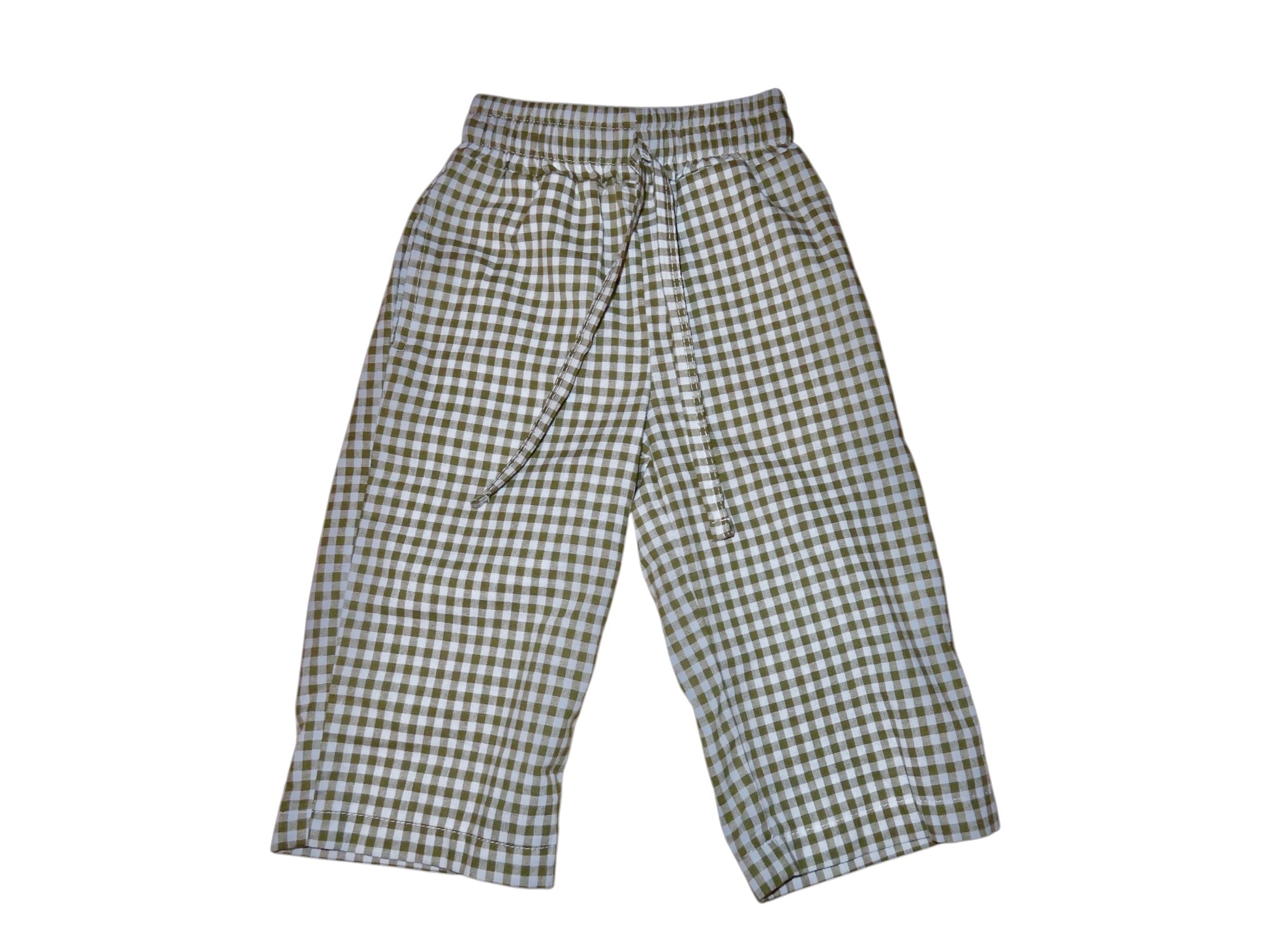 - Small checkered print in khaki green